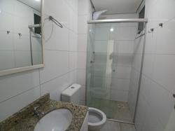 O banheiro está mobiliado, proporcionando mais conforto e funcionalidade.