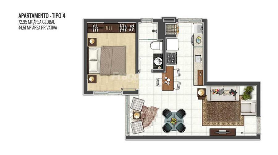 Área Global: 72,95m² | Área Privativa: 44,51m²