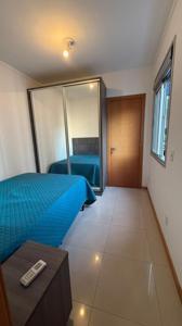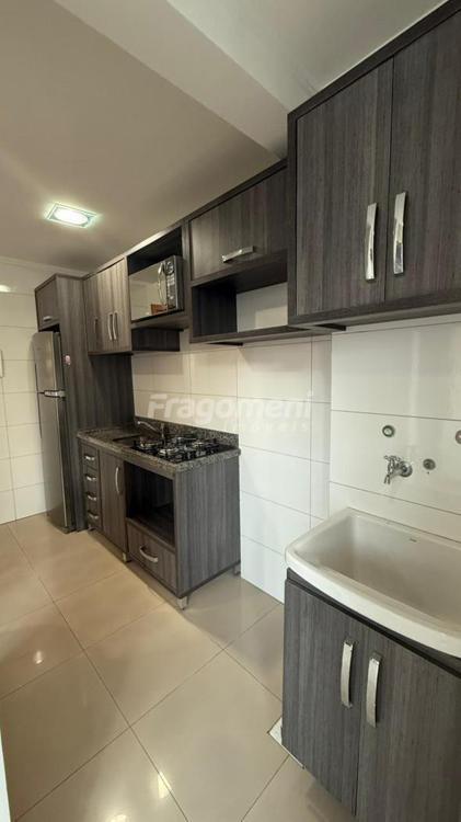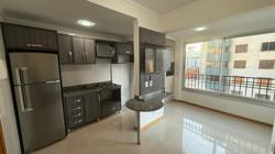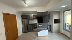 O acabamento inclui piso em porcelanato, com cozinha americana, área de serviços, um dormitório e banheiro.