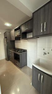 Semi-mobiliado, incluindo eletrodomésticos como geladeira, fogão e máquina de lavar, além de móveis na cozinha e no banheiro.