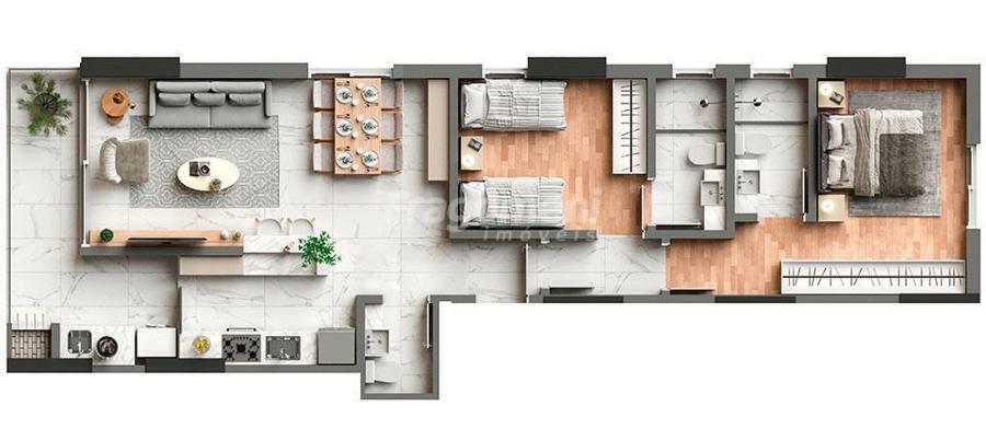 O apartamento possui acabamentos de qualidade, com piso de porcelanato, rebaixamento em gesso e acabamento em gesso em todos os ambientes, garantindo modernidade e elegância.