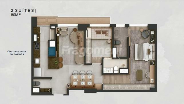 Este imóvel combina conforto e sofisticação em cada detalhe. Com 80,95 m² de área útil, o apartamento conta com duas suítes, sendo a suíte master um verdadeiro destaque, com amplo closet para mais praticidade e organização. A cozinha, além de moderna, possui uma churrasqueira, perfeita para momentos de confraternização. Um lar ideal para quem busca um espaço funcional e acolhedor.