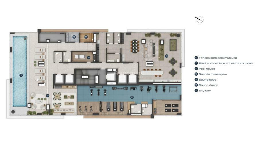 O Rooftop do Vanguard é o grande diferencial, oferecendo uma experiência única e exclusiva. Com vista panorâmica e vidro do chão ao teto, o espaço proporciona uma visão deslumbrante de 360º da cidade. O Rooftop conta com piscina coberta e aquecida com raia, fitness completo com sala multiuso, sauna úmida e seca, além de uma sofisticada sala de massagem. Para momentos de lazer, um sky bar e uma pool house oferecem conforto e elegância, elevando o conceito de viver bem.