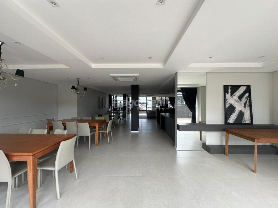 Um apartamento por andar composto por 03 suítes, lavabo, sala dois ambientes, cozinha integrada com churrasqueira, área de serviços separada e duas vagas de garagem.