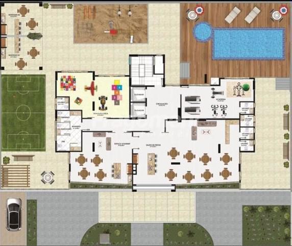 - Piso porcelanato nas áreas sociais;