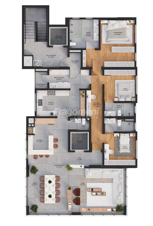- ÁREAS COMUNS TOTALMENTE DECORADAS E MOBILIADAS;