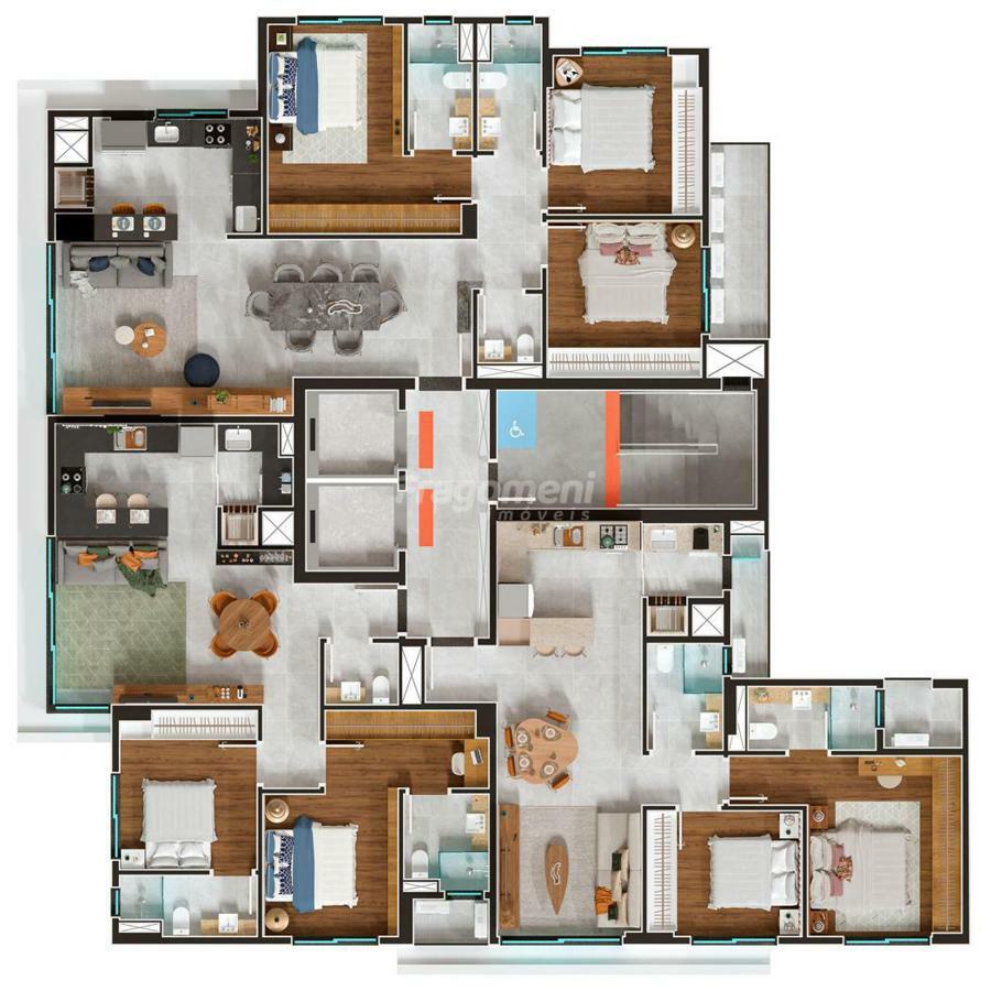Os apartamentos possuem 02 ou 03 dormitórios, todos com suíte, e contam com churrasqueira, ideal para momentos de lazer com família e amigos. O Horizon Residence também se destaca por suas áreas comuns cuidadosamente planejadas, diversificadas, e pela segurança e bem-estar, com acesso via reconhecimento facial e biometria.