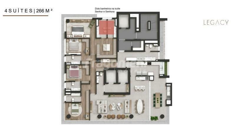 Amplo apartamento com 4 suítes ou 3 suítes, podendo ser escolhido na planta conforme desejar.