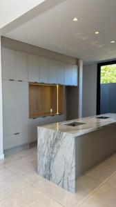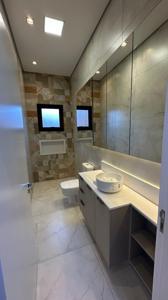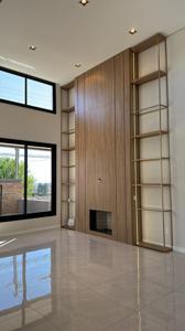 A casa conta ainda com lareira, oferecendo charme e conforto para os dias mais frios. As aberturas dos dormitórios possuem persianas elétricas, trazendo praticidade e controle de luminosidade. Os banheiros são equipados com bacias sanitárias Decca com caixa acoplada, e a água é aquecida por sistema de passagem instalado na cozinha, lavanderia e lavabo. A iluminação já está instalada, e as portas internas de madeira com pintura em laca e soleiras em granito completam o padrão elevado dos acabamentos.