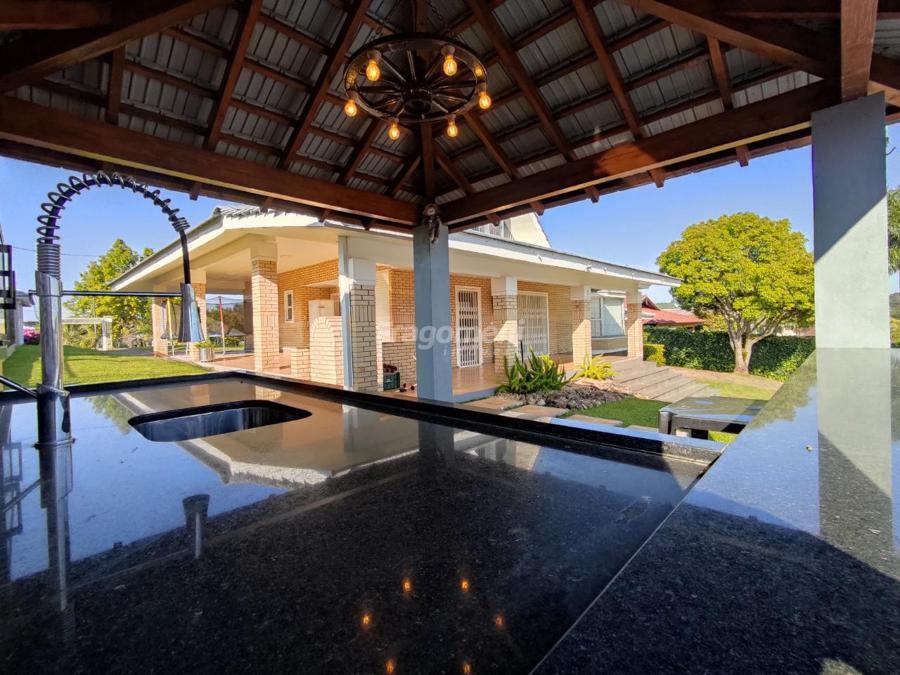 Casa alto padrão contendo 350m² (paredes duplas), 3 suítes, sala de jogos, banheiro social, varanda frontal e lateral, quiosque novo (20m³) contendo churrasqueira com fogão campeiro e forno a lenha.