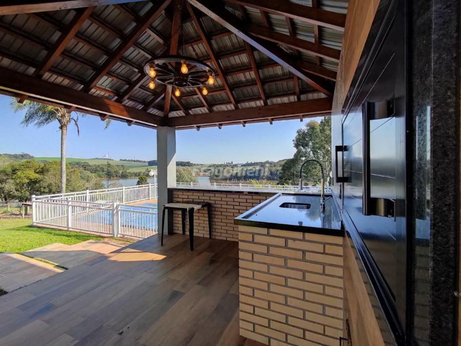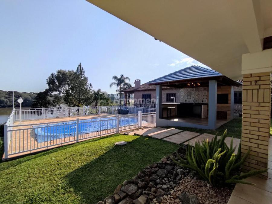 A chácara contempla dois terrenos juntos com paisagismo, árvores frutíferas, parreira de uva, horta automática, totalmente cercada com tela soldada e palanque de concreto, piscina em fibra tamanho 4x8 (com aquecimento solar, sistema novo), mais deck tamanho12x10, sala de jogos, depósito, oficina, garagem para embarcações, lareira canadense de alta performance, trapiche flutuante ecológico com madeira tratada, rampa privativa em concreto, portão eletrônico na chácara e no condomínio (abre o portão de dentro de casa com câmera).