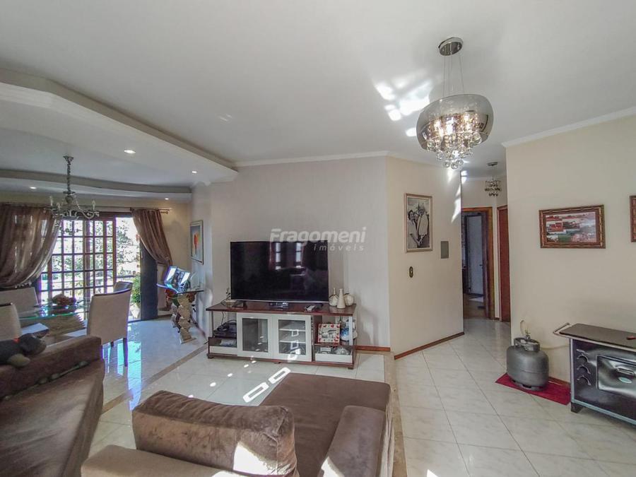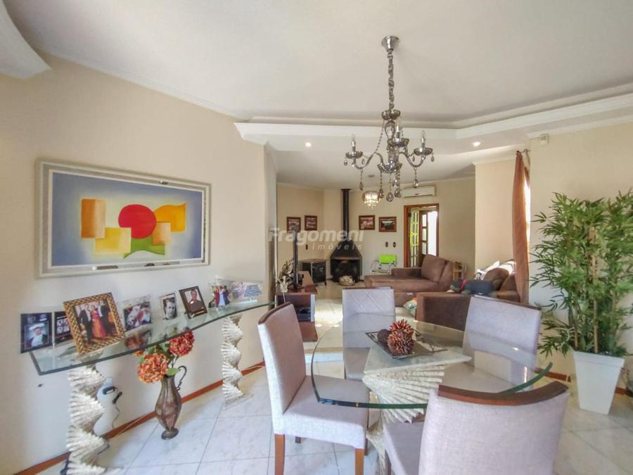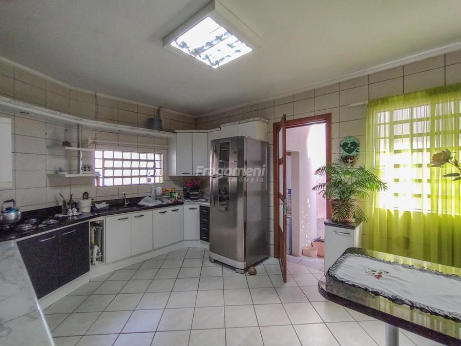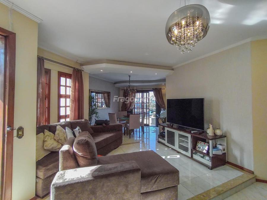 Composta por dois pavimentos, parte superior sala com dois ambientes e lareira, sacada, cozinha, área de serviços, 03 dormitórios sendo uma suíte e banheiro social, a parte inferior conta com garagem para dois carros e salão de festas.
