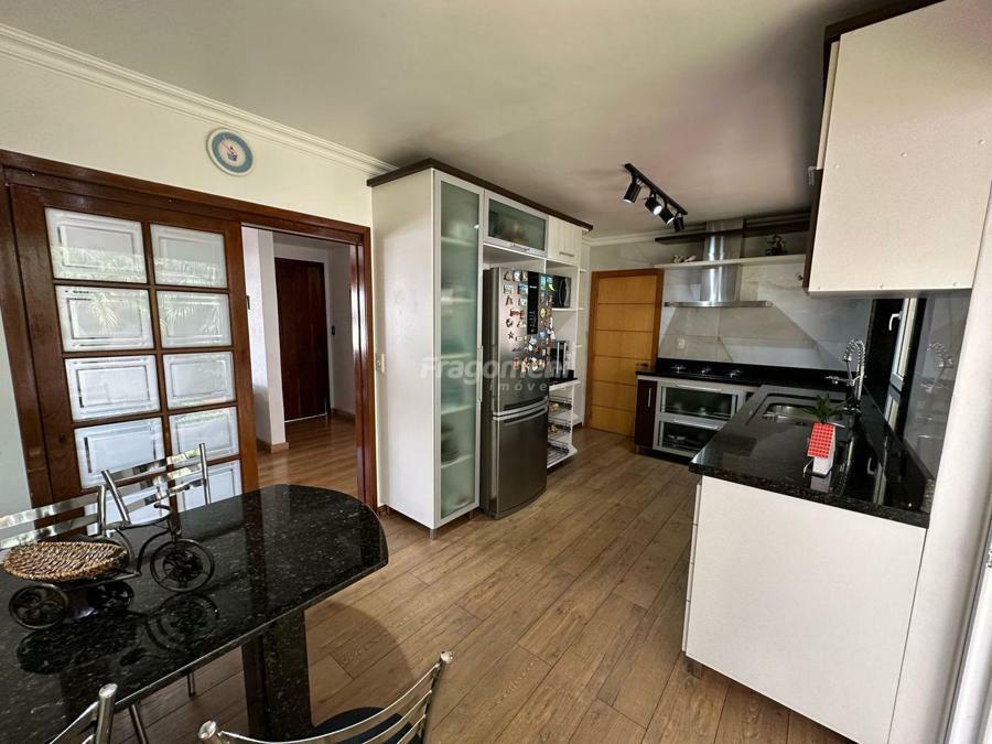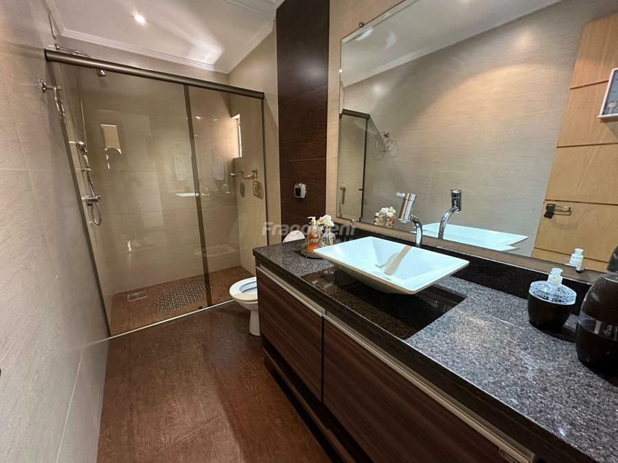 O pátio conta com piscina aquecida, amplo quiosque com churrasqueira e banheiro auxiliar para a piscina.