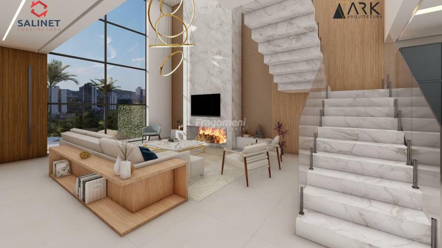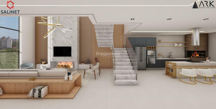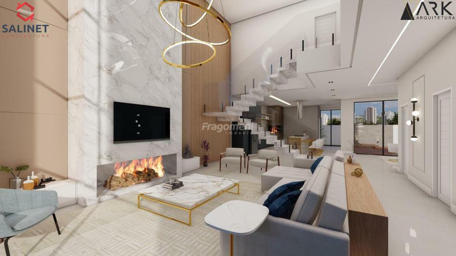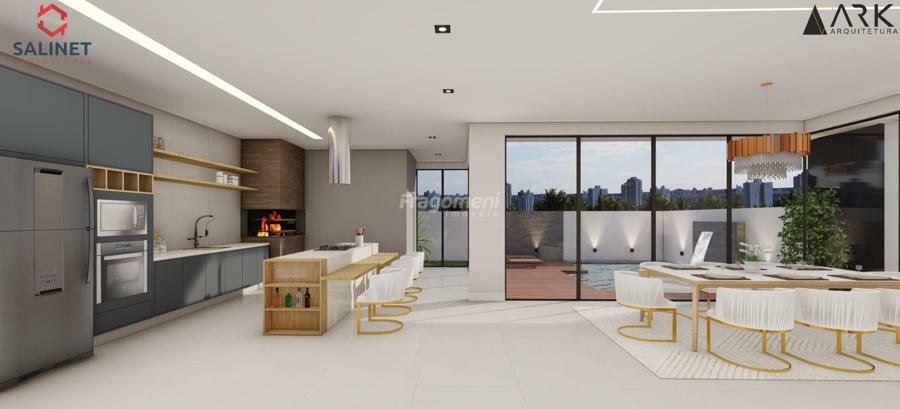 living integrado contempla sala de estar, sala de jantar, cozinha gourmet com churrasqueira, lavabo, depósito e