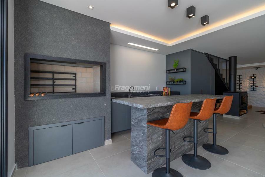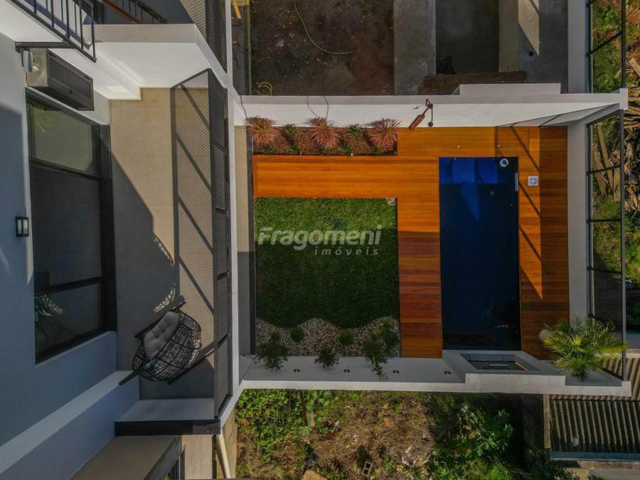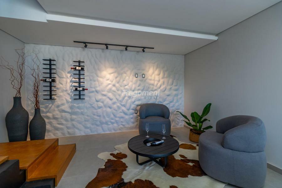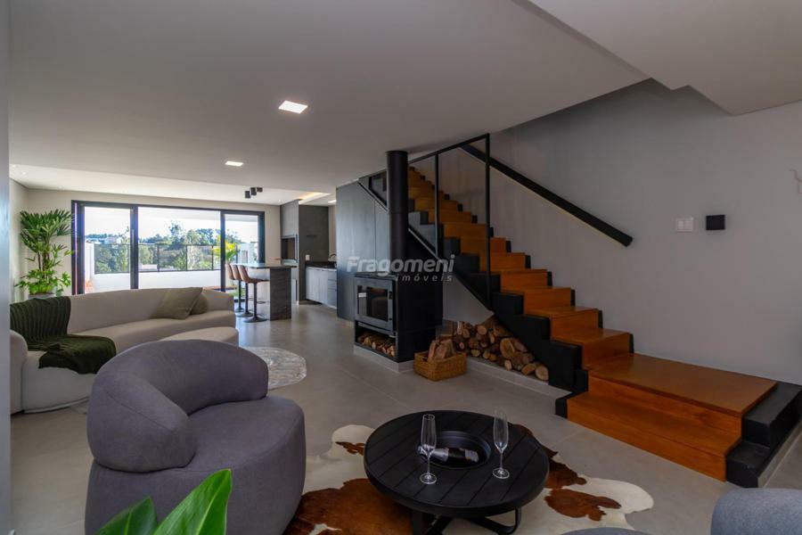 Casa Mobiliada exceto dormitórios. Ainda, há lareira/calefator funcional, projetada para aquecer todos os ambientes, especialmente os dormitórios superiores com 30min de fogo aceso, junquer instalado com P45 com controlador de temperatura no pavimento superior e água quente nos pontos pertinentes. Espera para ar condicionado e decoração e móveis sob medida.