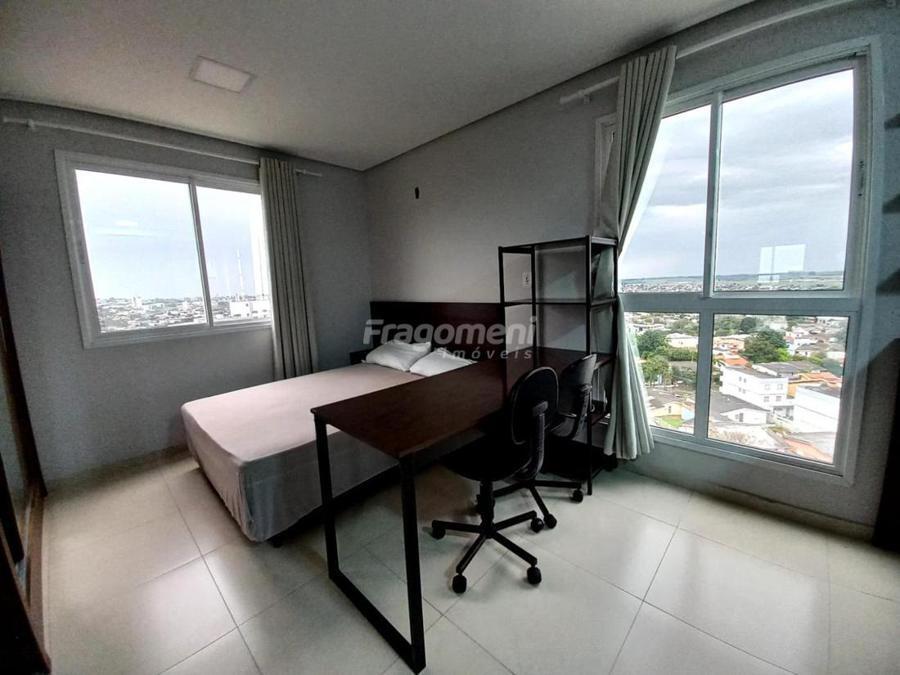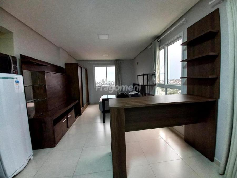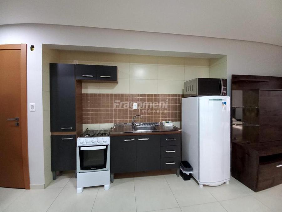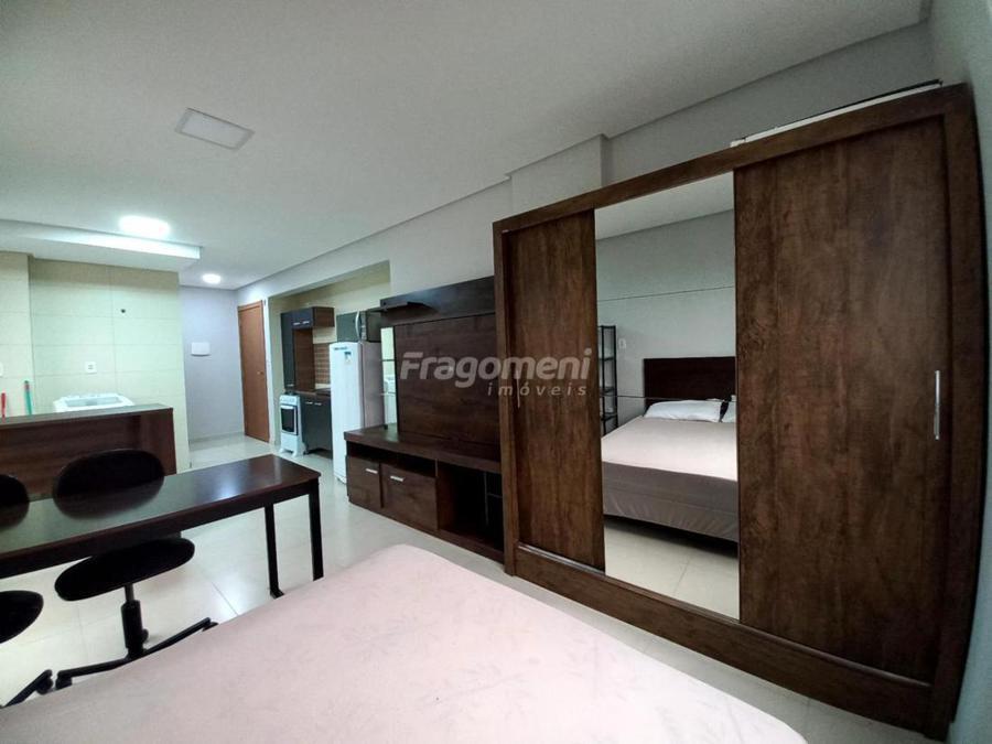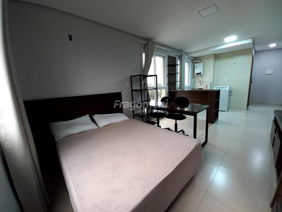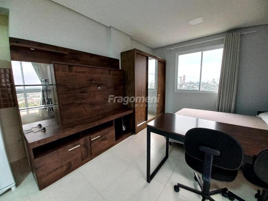 Kitinet mobiliada, composta por sala e quarto conjugados, cozinha, área de serviço, banheiro social, piso em porcelanato e acabamento em gesso com ótima posição solar.