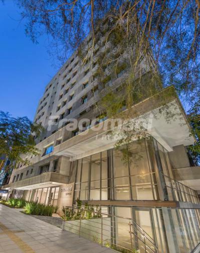 Fachada com painéis arquitetônicos Hall com espera para visitantes Recepção com controle de acesso 2 elevadores Auditório Estacionamento rotativo Gerador parcial de energia